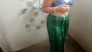 Indain sealed Wife taking bathtub alone see by uncle