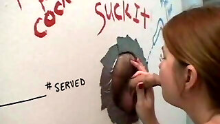 Gloryhole Secrets mature redhead swallows jizm