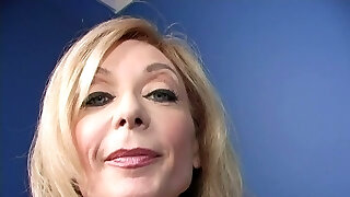 Mature blonde Nina Hartley gargles a BBC through a gloryhole