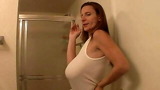 Provocative mature Cassidy Banks takes a shower and gets poked