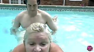 old woman getting plowed by the pool