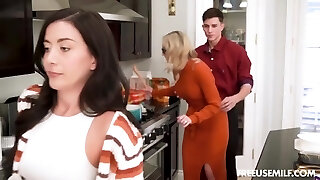две великолепные грудастые мамочки бесплатно используются бесстыдным парнем из извращенной сводной семьи