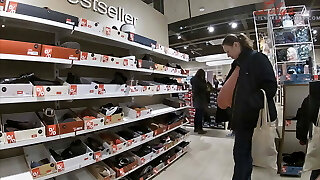 Peeping Tom Watching Mature Blonde Trying On Different Sexy Lingerie Outfits